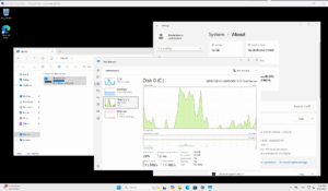 - QEMU/KVM spouští Windows 11: Uvnitř kontejneru se tedy vytvoří plnohodnotný virtuální stroj, do kterého se automaticky stáhne a nainstaluje Windows 11.